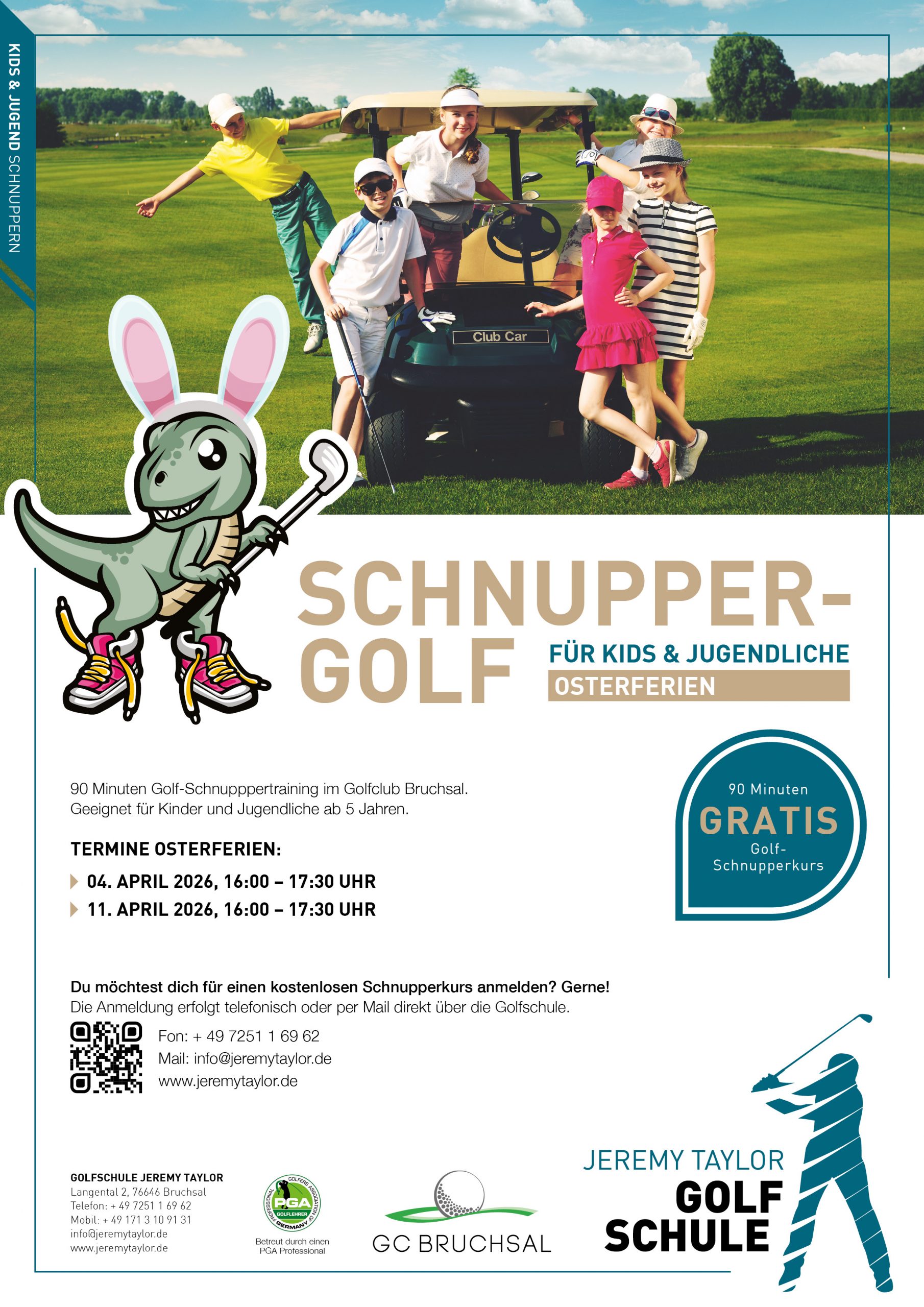 90 Minuten Golf-Schnuppertraining mit einem PGA-Pro im GC Bruchsal.Geeignet für Kinder ab 5 Jahren.